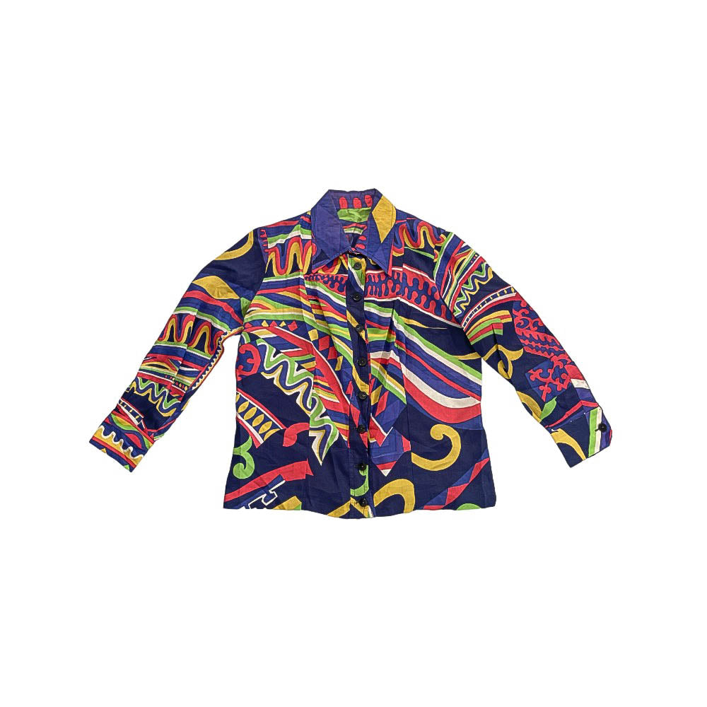 In deze box vindt u een mix van 70's stijl damesshirts in verschillende kleuren en patronen.